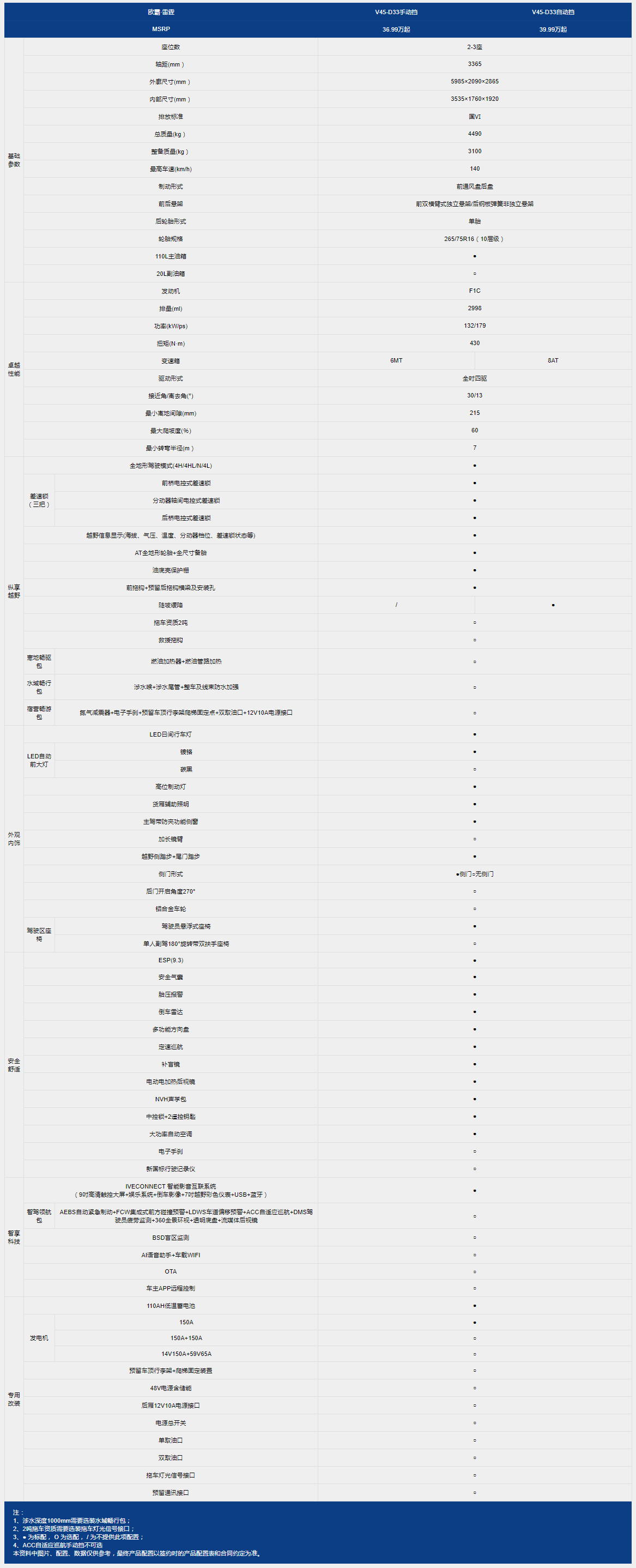 欧霸·山海/欧霸·雷霆厢式版专业越野平台 参数配置表